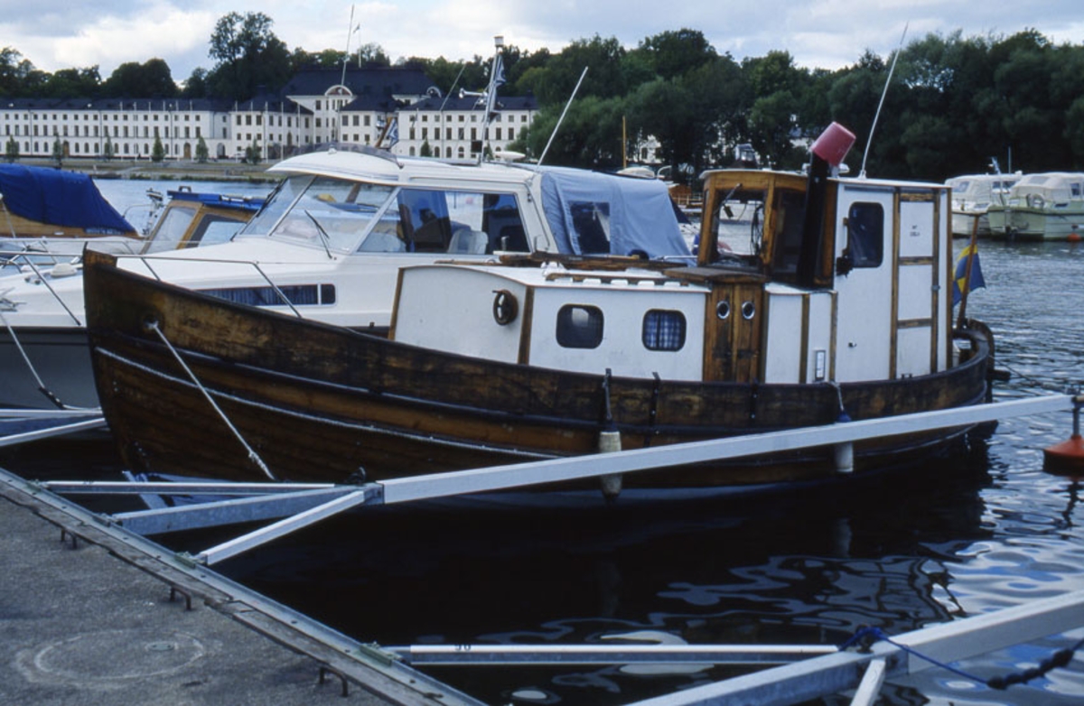 [Text diaram:] STH:KARLBERGS KANAL SKÖTBÅT? (LAXKUTTER) FOTO: BILL ÖSTRING 2002-09-21