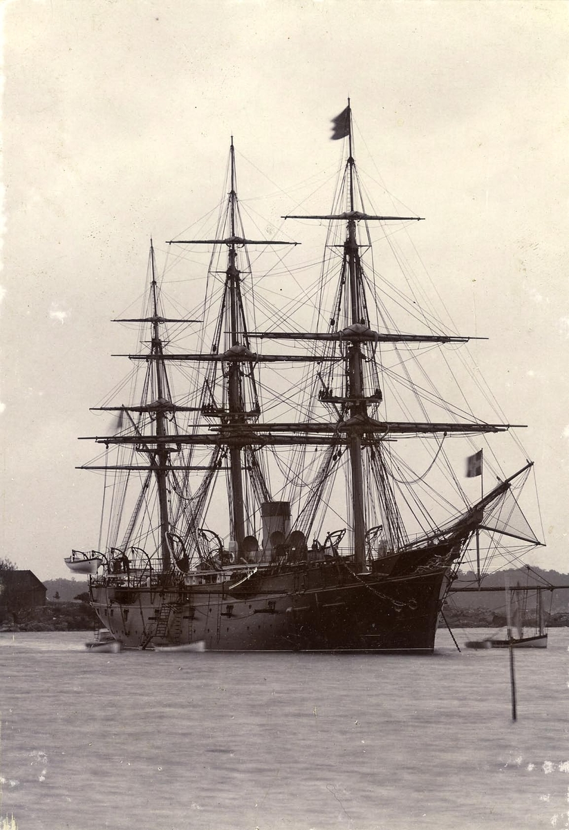 Långresan 23/4 1895 - 4/5 1896. Chef: Kom.kapt. O. Lindbom, Sek.: Kapt. A.G.M. v. Schoultz. (mer info på fotot)
