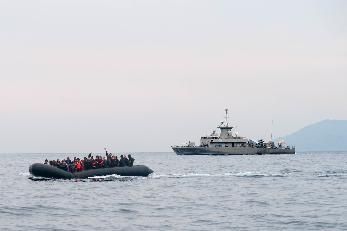 Migrantbåt upptäckt av den grekiska kustbevakningen P71.