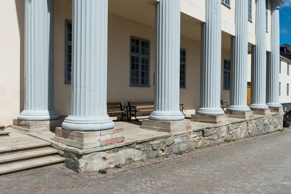 Fotodokumentation på Marinbasen i Karlskrona. Pelare till modellsalsbyggnaden. Byggnaden uppfördes 1784 på Kansligatan efter ritningar av Fredrik Henrik af Chapman.