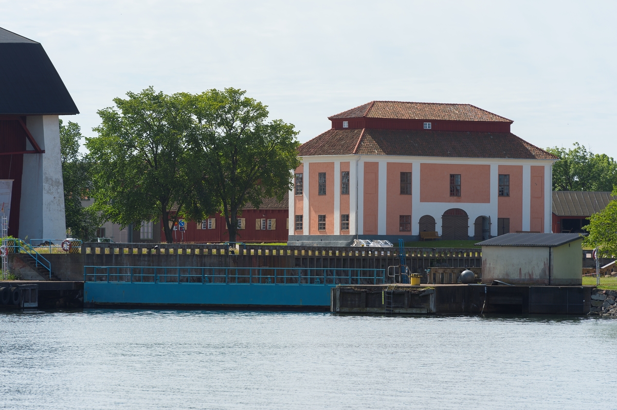 Fotodokumentation av byggnader på Lindholmen i Karlskrona. Polhemsdockan framför repslarebanans nordvästra banhuvud.