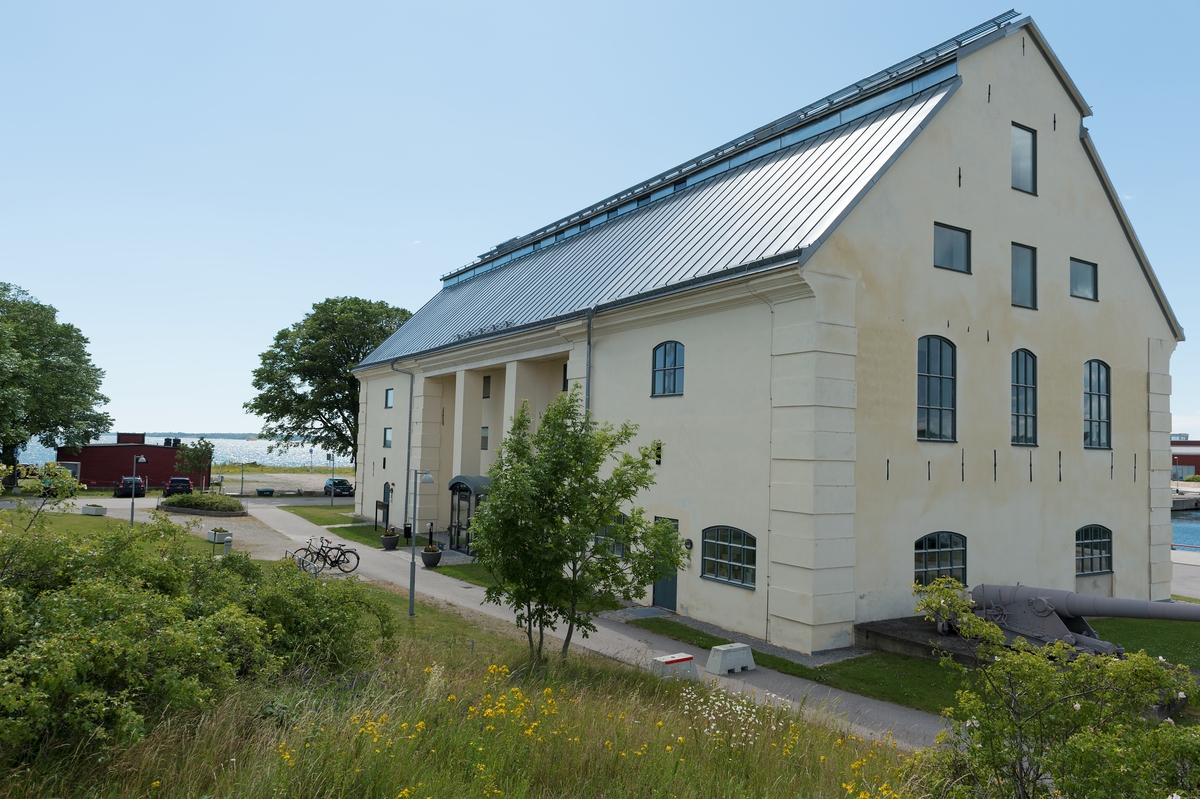 Fotodokumentation av byggnader på Lindholmen i Karlskrona. Finska kyrkan. Byggnaden uppfördes i slutet av 1690-talet som tjärbadsstuga för rep. På 1720-talet förändrades byggnaden till inventariekammare för skeppsinventarier. Åren 2006-2007 genomfördes en omfatande om- och nygestaltning både in- och utvändigt av byggnaden. Östra långsidan och norra gaveln av byggnaden.