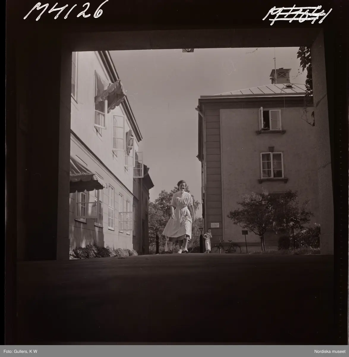1711 En sjuksköterskas arbetsdag. En sköterska påväg in i sjukhusbyggnad.