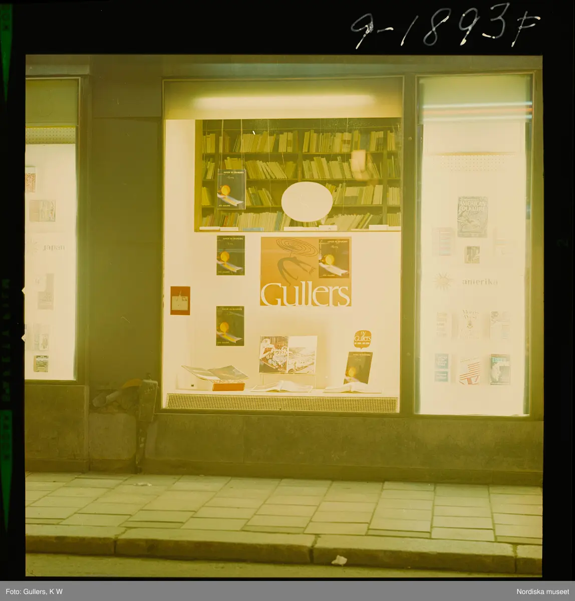 Titel: Skyltfönster med reklam för K W Gullers fotobok Made in Sweden.