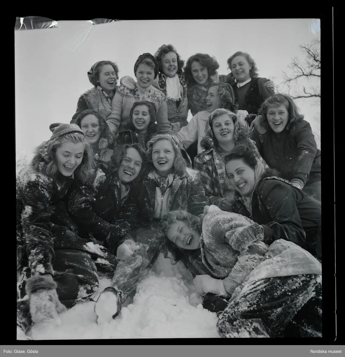 Hellasgården, Ringblom med fru på trappan samt skidåkaren Göte Andersson, 15-12-1944.