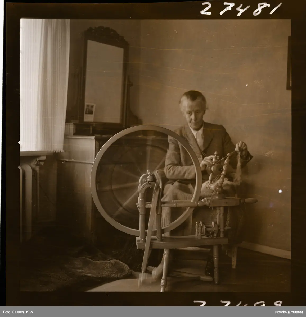 2390 Nilsson Fröken, Majvägen 7, Bromma Handarbete-korgflätning-tagn. Svensk Hemslöjd; vid Spinnrocken Jan. 57