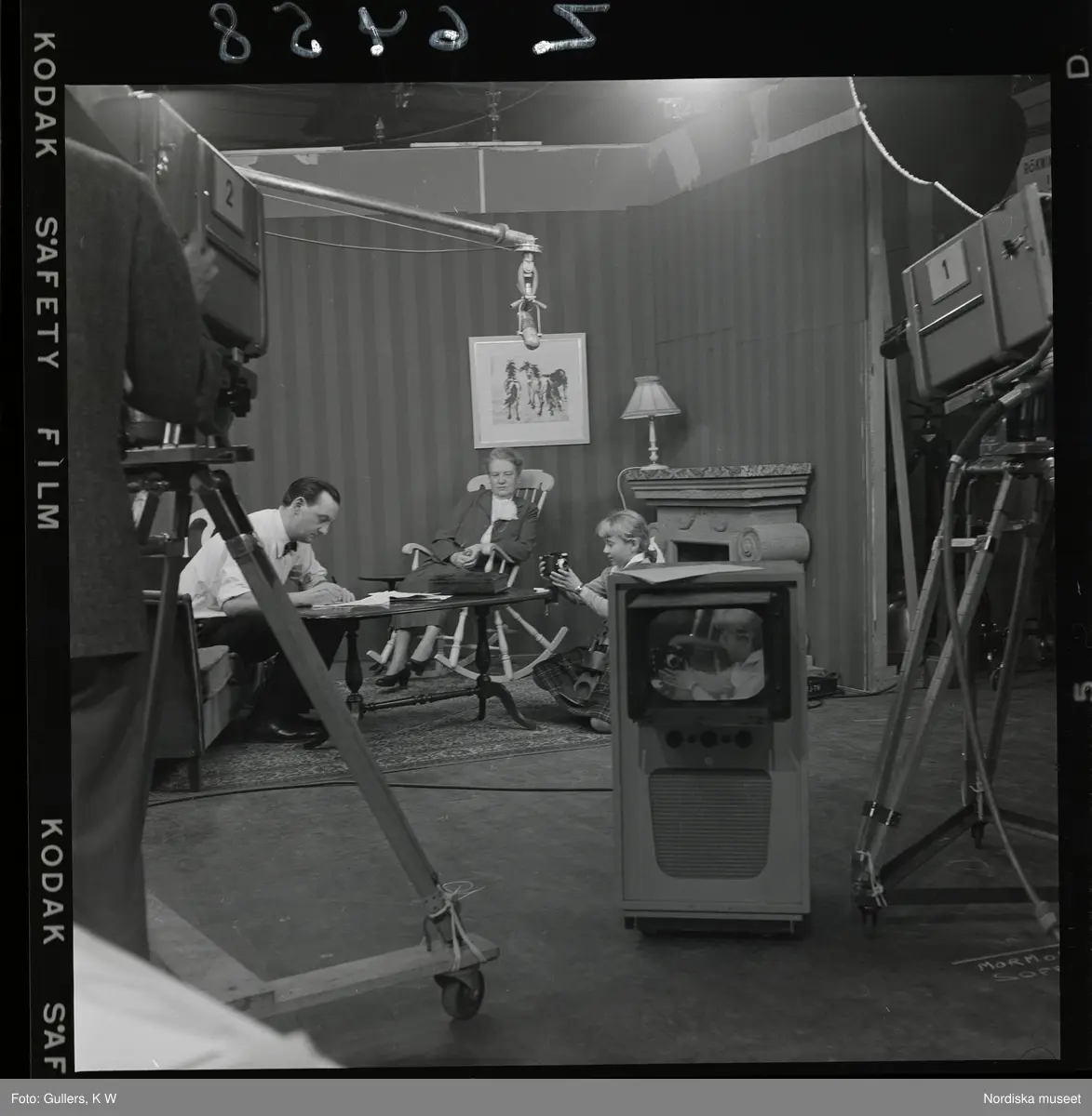 2379 Television Tak för TV; Sändning; Från utsändn. T-V-Studion + KWG på TV . Fotograf K W Gullers i TV-studio vid inspelning av fotografi-kurs. "Gullers fotokurs"
