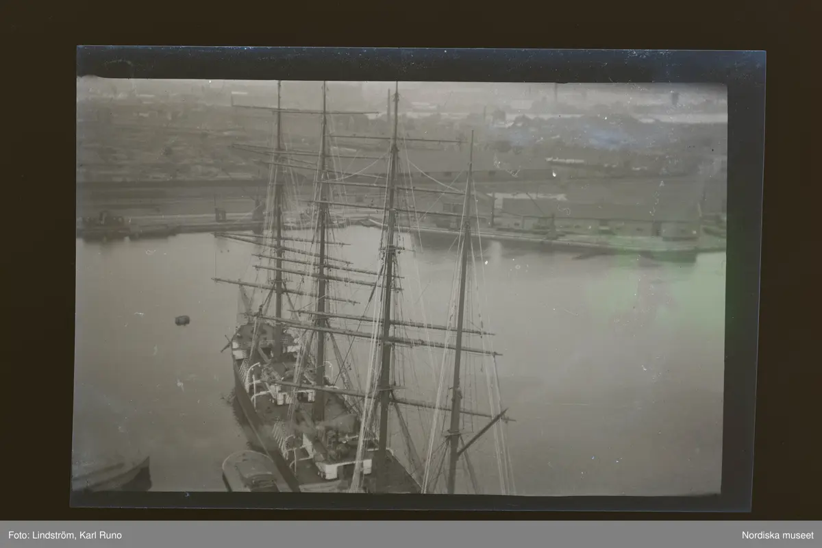 Vy över fartyg i hamn.