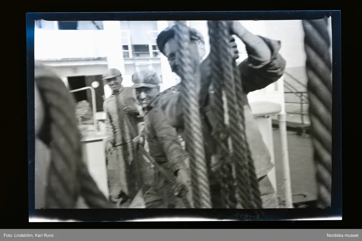 Besättningsmän i arbete på däck.