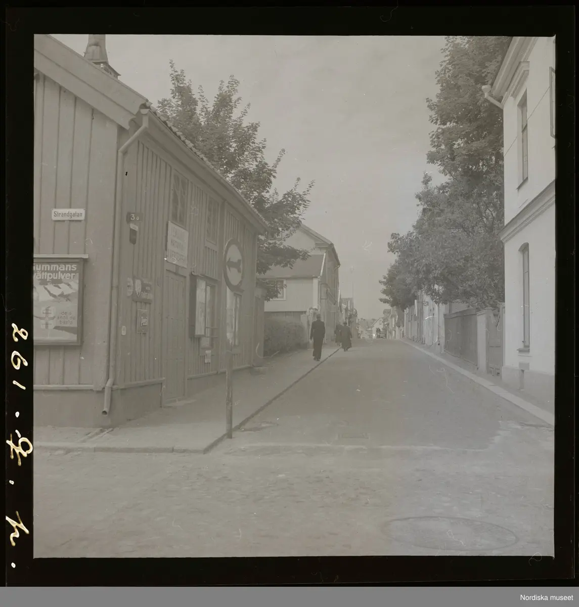 Stadsbild. Hörnet Strandgatan med Engdahl matvaru & diverseaffär.