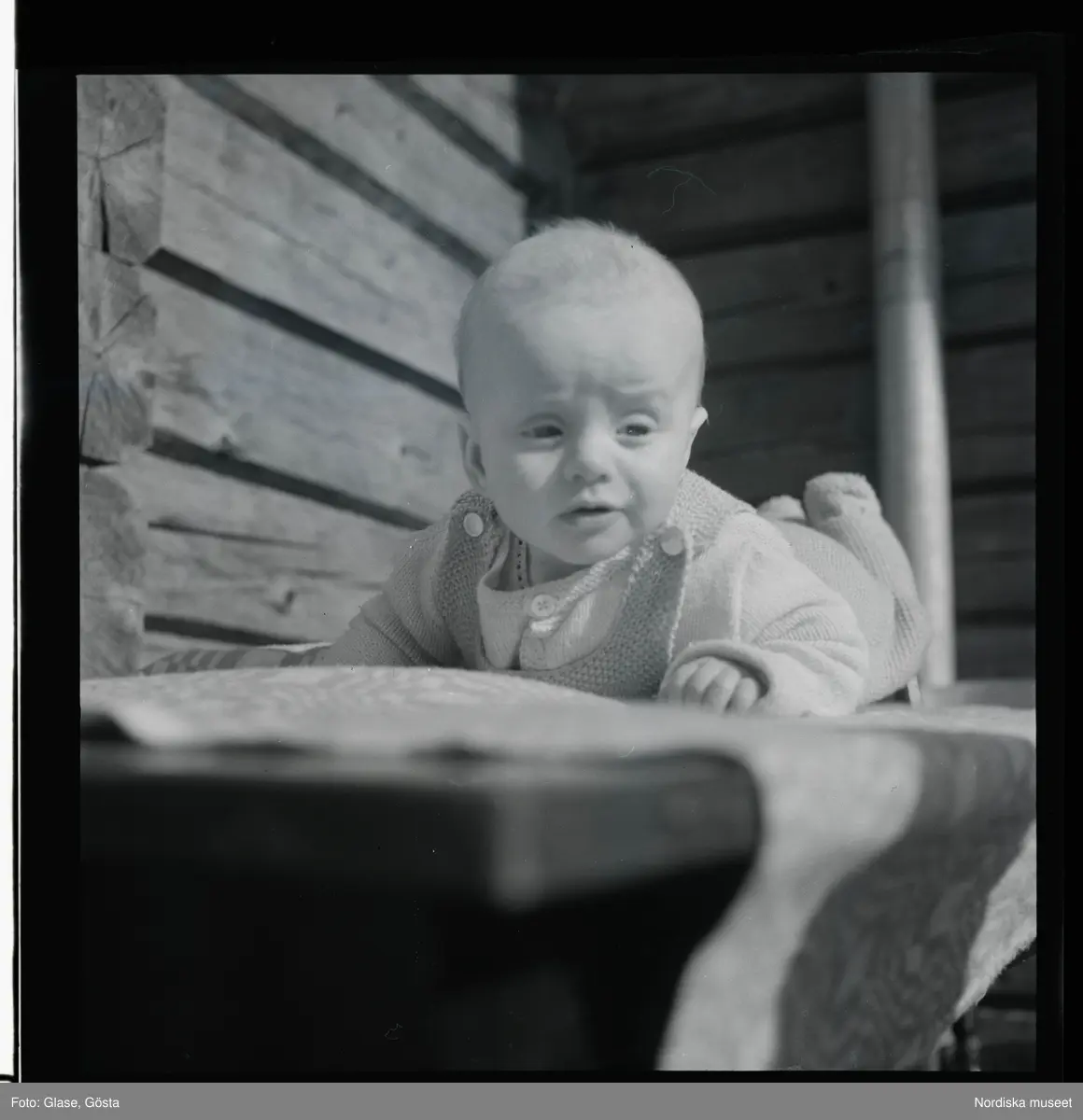 Titel: Hellasgården, Ringblom med fru på trappan samt skidåkaren Göte Andersson, 15-12-1944.