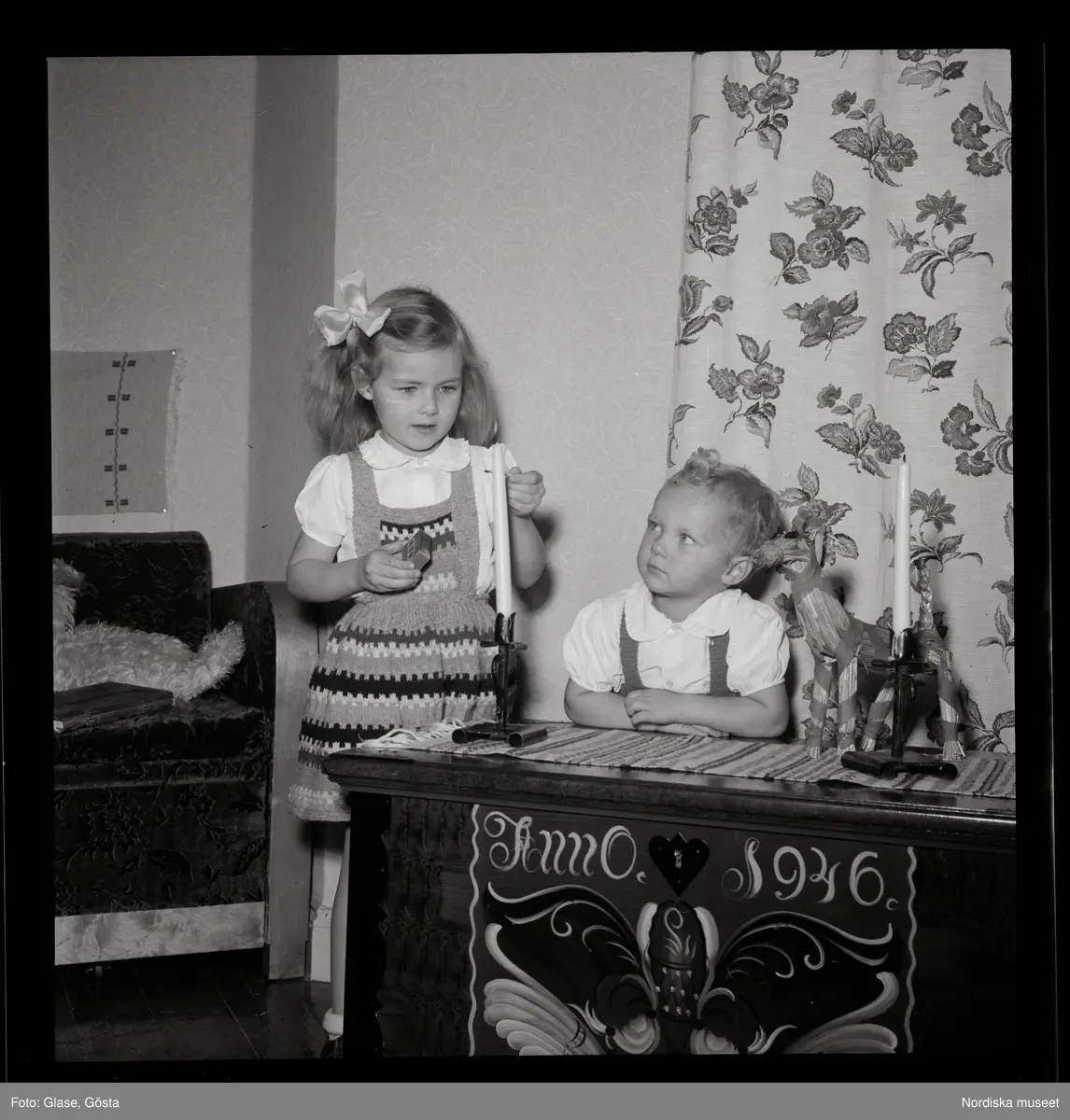 Narving Arvid, familjen, Södertälje, 1946 (barnen i julförberedelser).