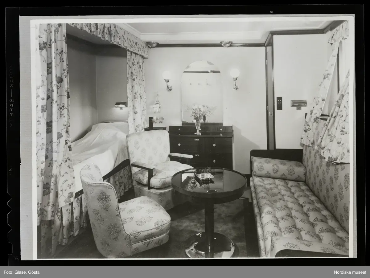 Titel: Rederi AB Nordstjernan, reproduktion, interiörer å deras båtar, 1947.