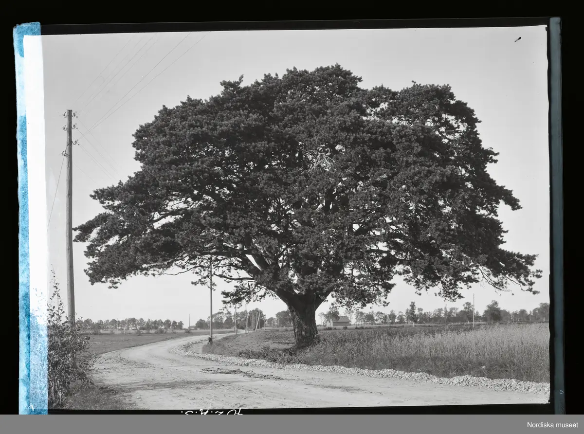 En landsväg svänger förbi ett stort ensamt träd.