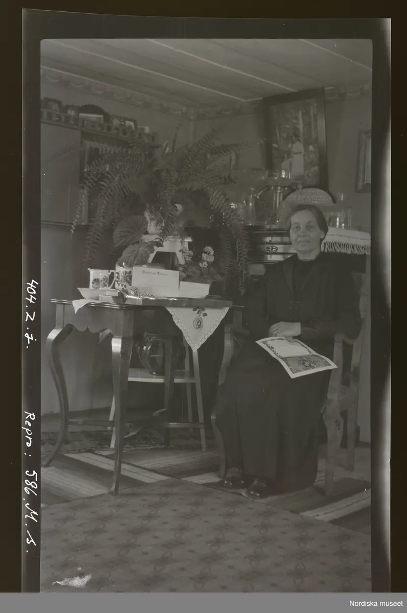 Fru Hanna Forsman sittandes vid ett bord med födelsedags-telegram och gratulationer.
