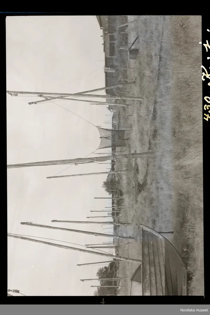 Titel: Text på montering i arkivet: "Åkroken" med pålar för bottengarn.