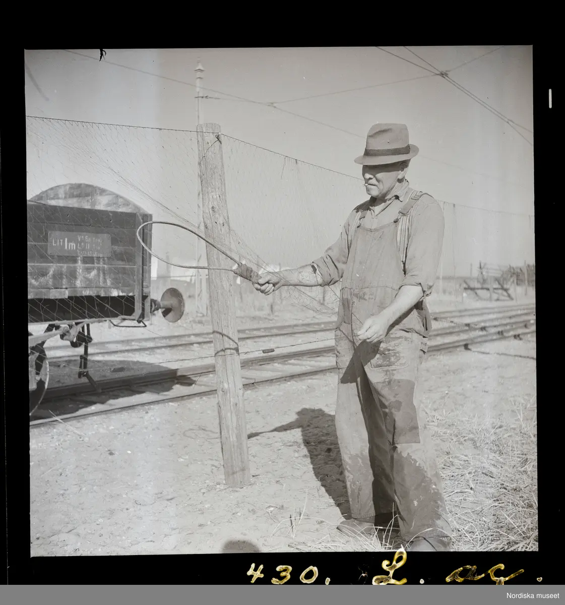 Text på montering i arkivet: Paul Pålsson reder garnen med "kvistekäppen".