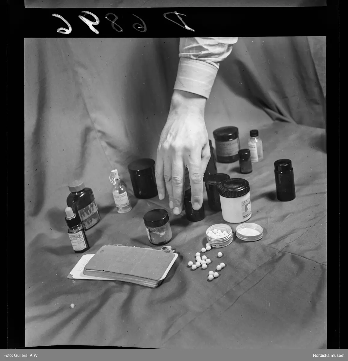 522 Kvacksalveri, Allers. Pillerburkar, flaskor och anteckningsbok.