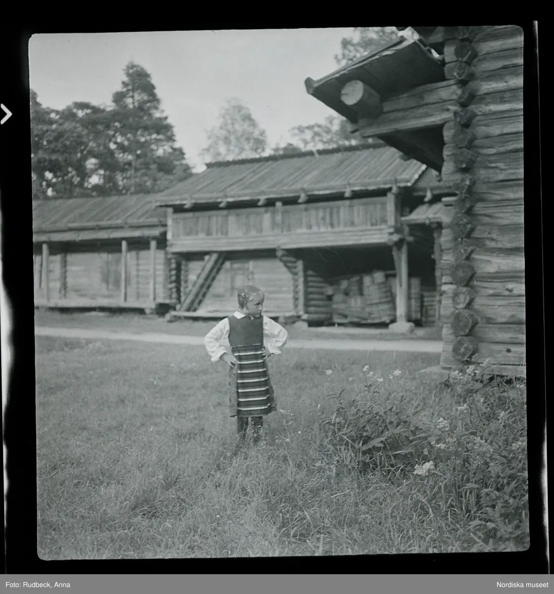 97 Skansen Ringleksbarn. En flicka i folkdräkt, utomhus på Skansen.