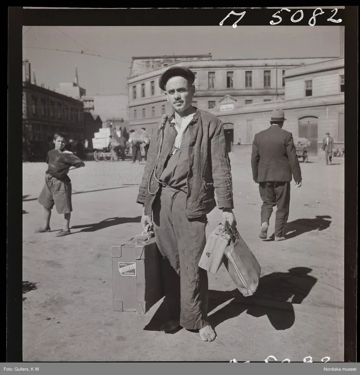 Istanbul. En man bär resväskor.