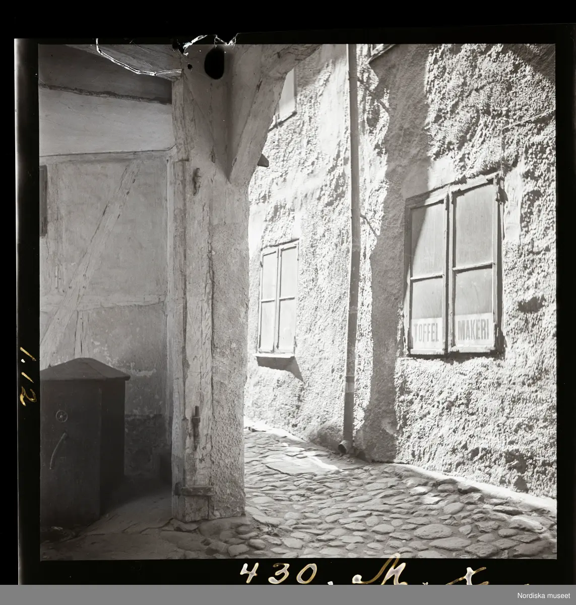 Toffelmakeri i en kullerstensgränd.