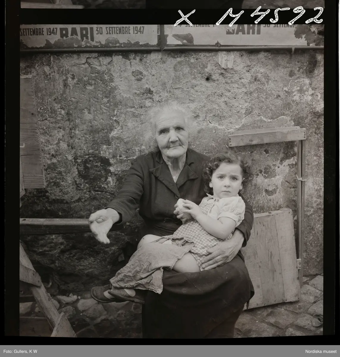 1717/B Rom. En äldre kvinna sitter på gatan med en flicka i famnen.