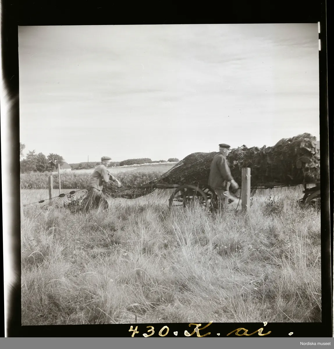 Text på montering i arkivet: Garnen fästas vid stöttorna.