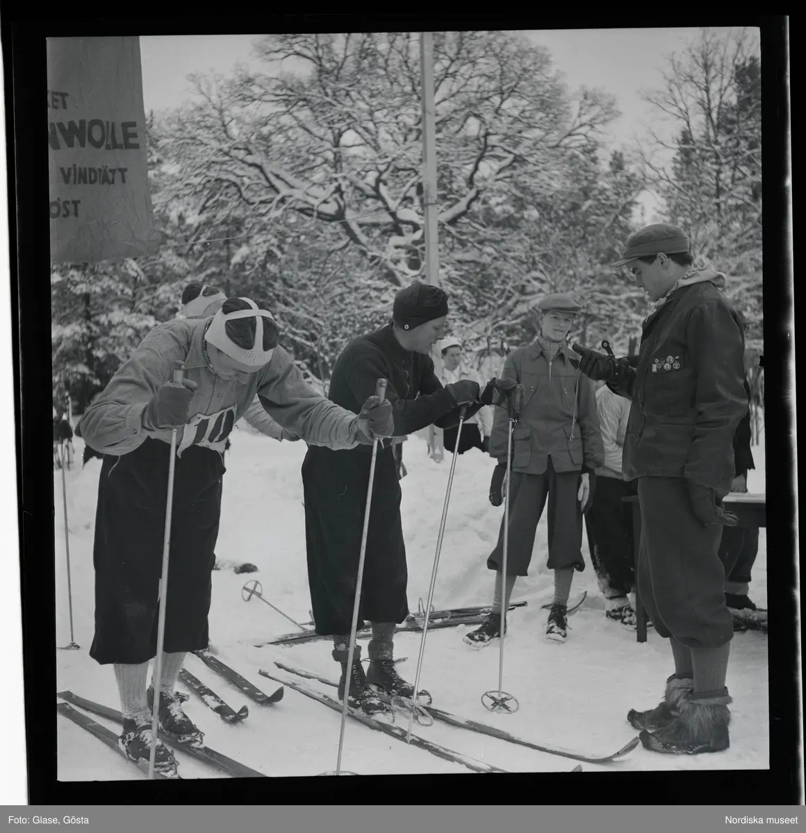 Hellasgården, Ringblom med fru på trappan samt skidåkaren Göte Andersson, 15-12-1944.