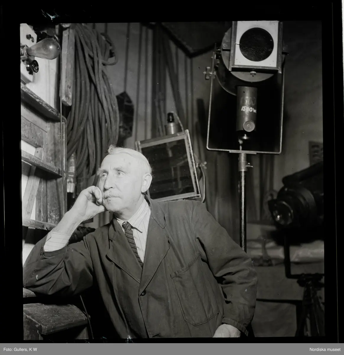 561 Operan för Allers. Man i overall bakom kulisserna.