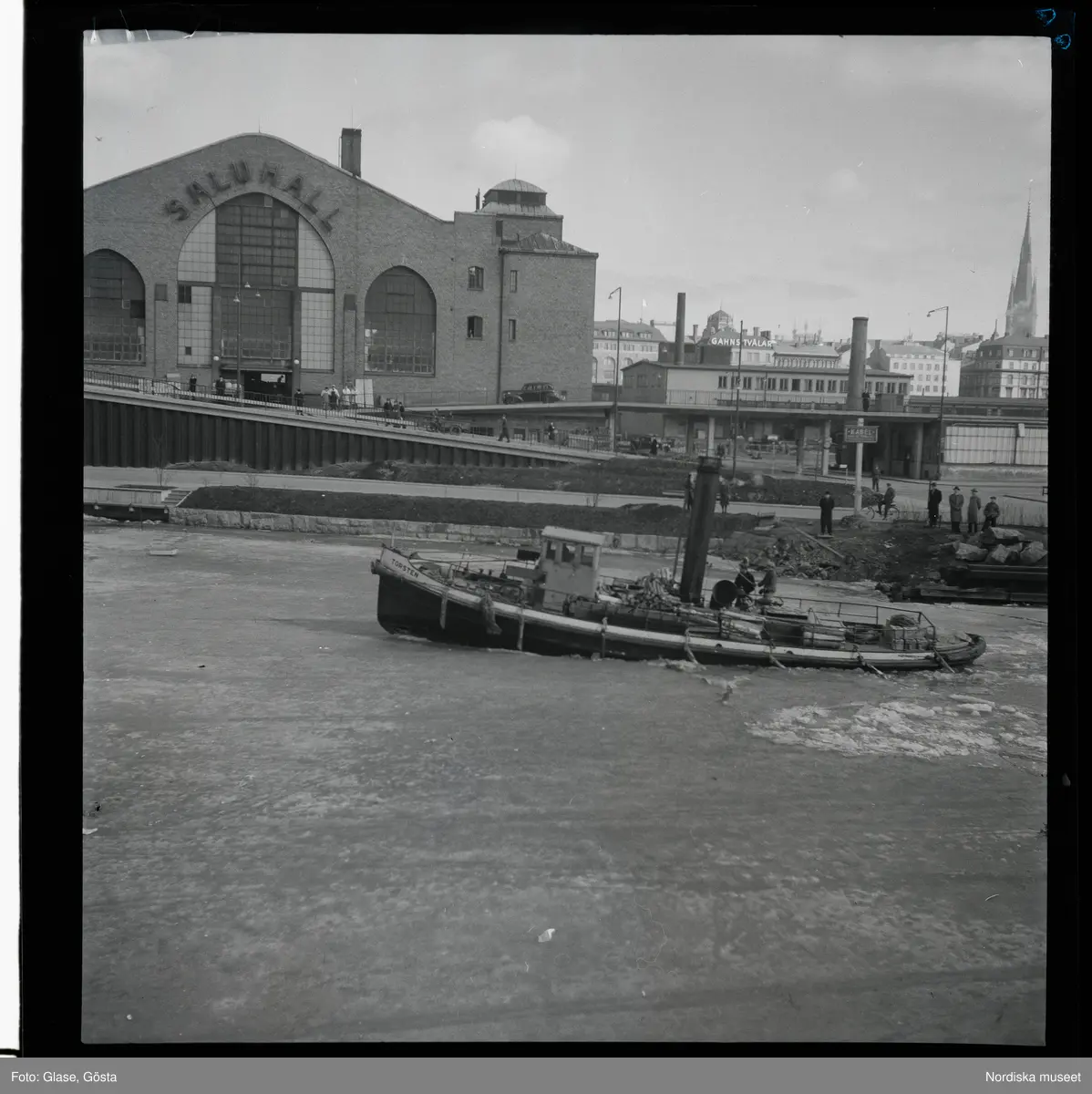 Titel: Isbrytare. Bryter ränna i Klara sjö, 1946.