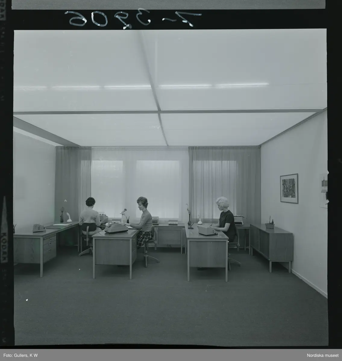 585/8 Facit Tokyo Daberg. Tre kvinnor arbetar vid skrivbord på ett kontor.