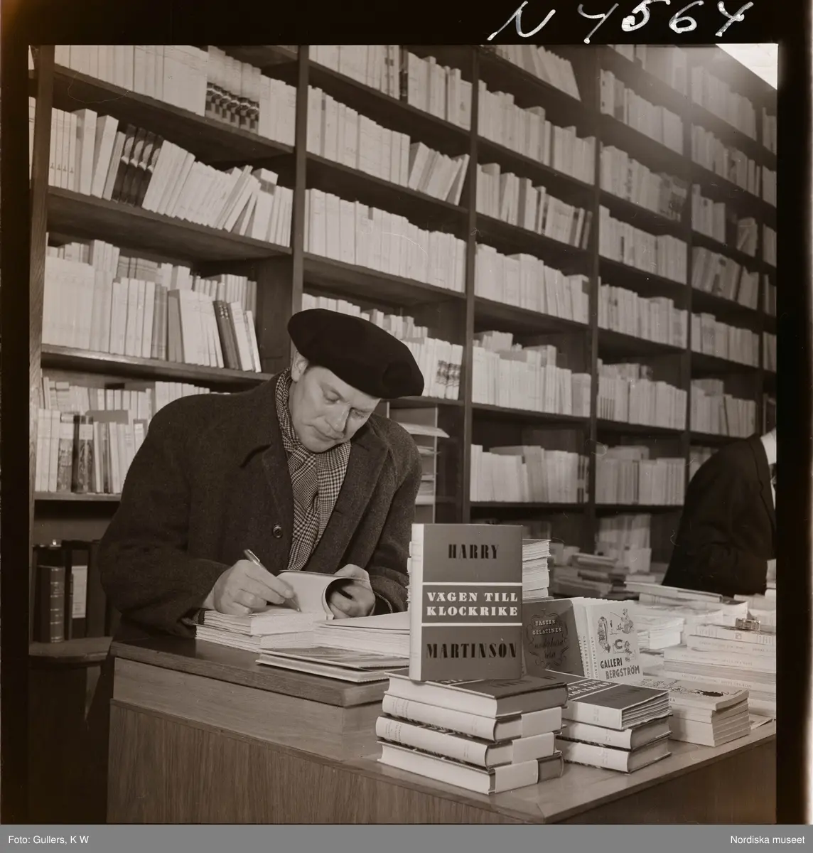 1696 A Harry Martinsson Skriver dedikationer i biblioteksbokhandeln