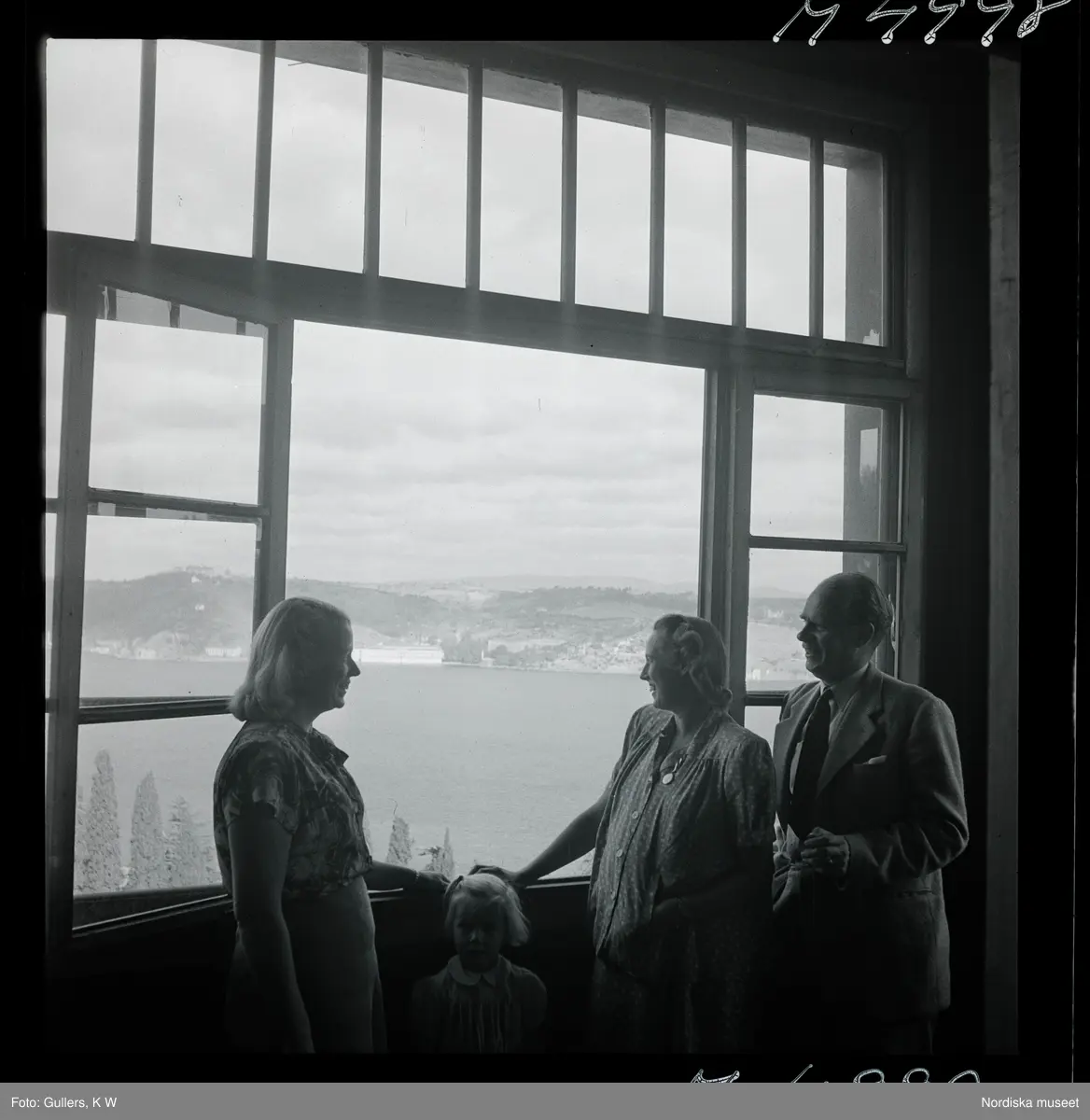 1717/K Istanbul allmänt. Två kvinnor, ett barn och en man står vid ett öppet fönster.