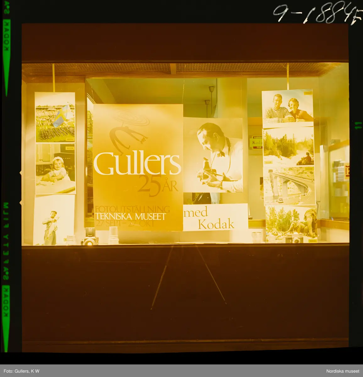 Skyltfönster med reklam för K W Gullers 25 år fotoutställning på Tekniska museet.