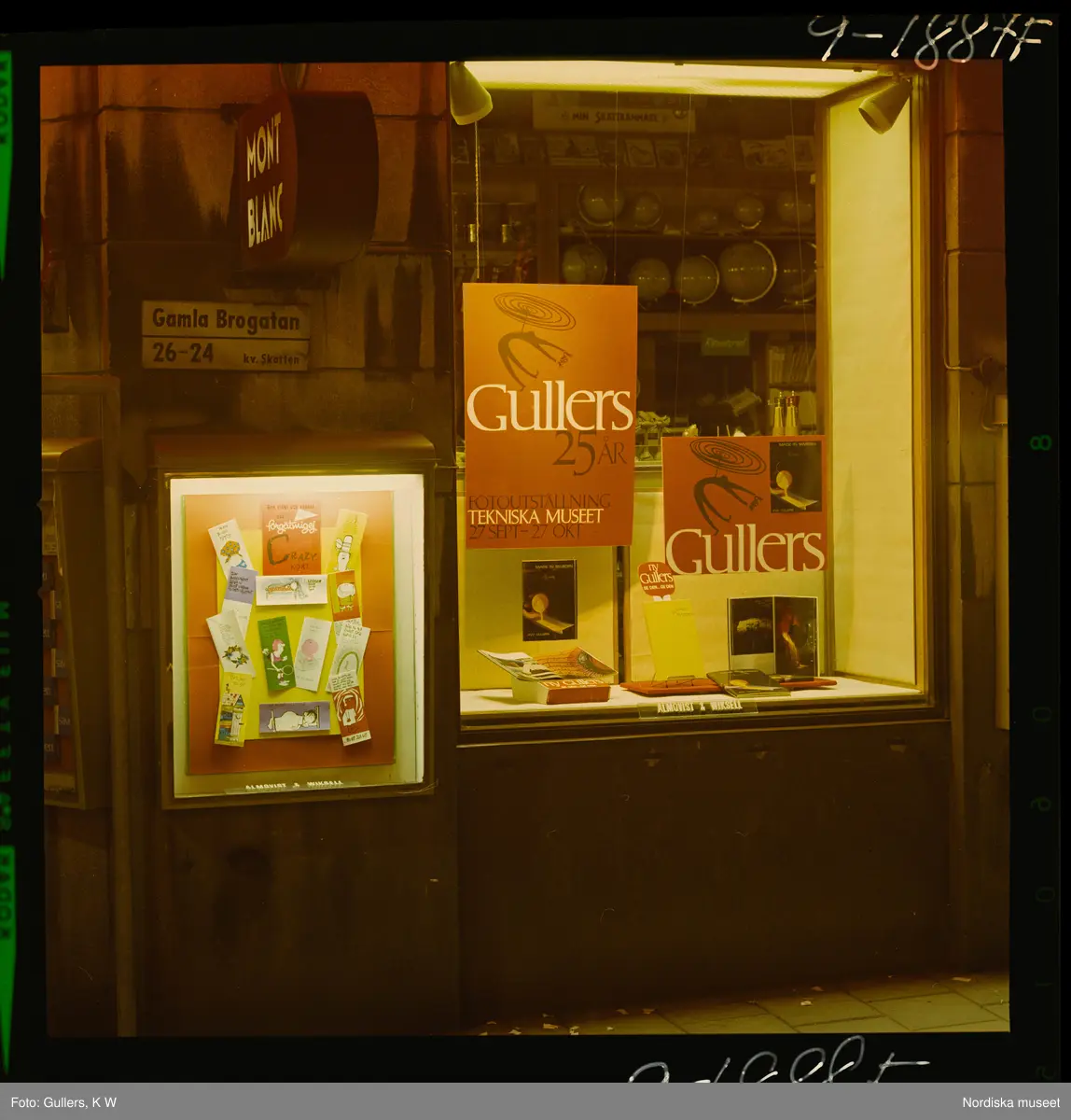 Skyltfönster med reklam för K W Gullers 25 år fotoutställning på Tekniska museet.