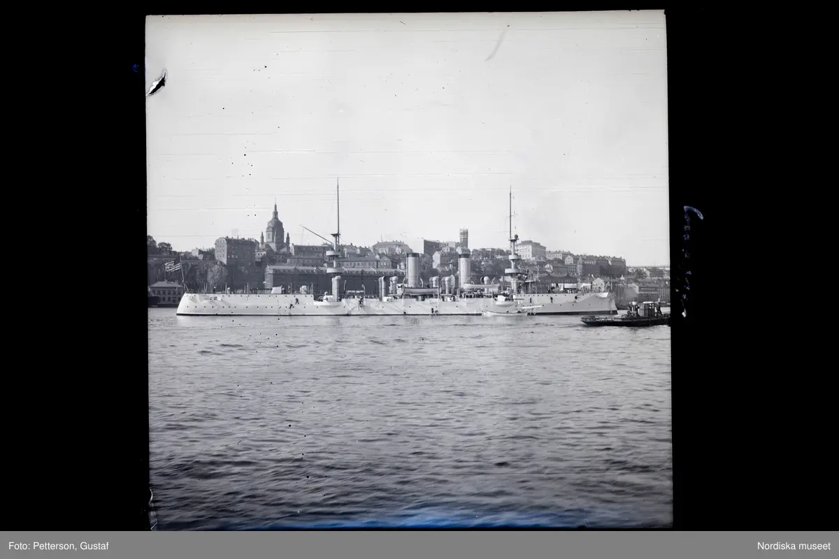 Ett Amerikans-flaggat fartyg vid Stadsgården, Stockholm.