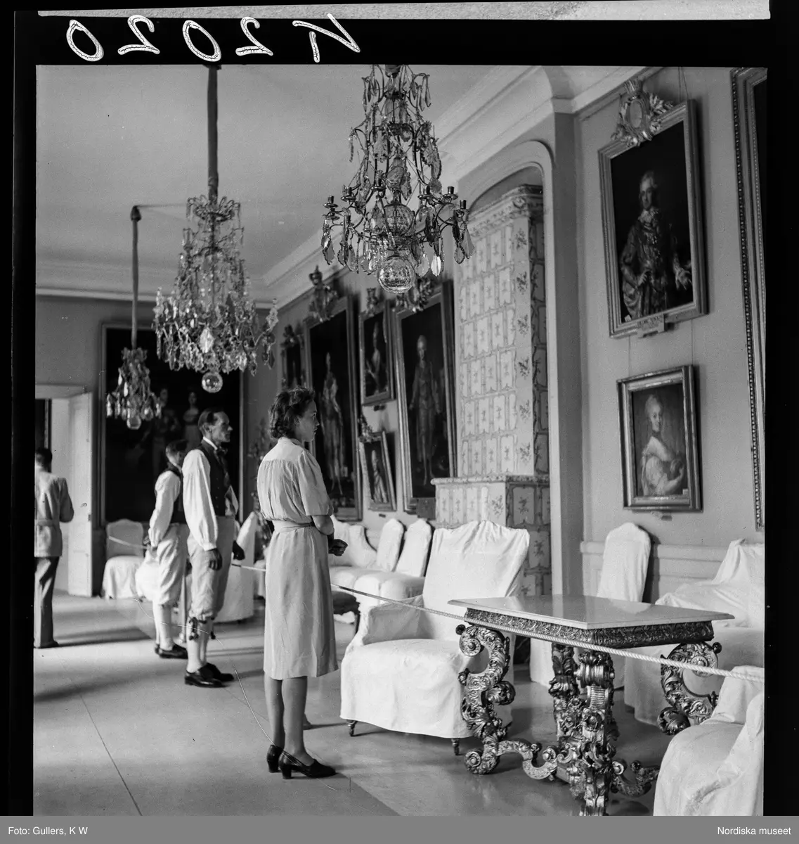 511 B Gripsholms Slott. Besökare i ett av rummen på Gripsholms slott.
