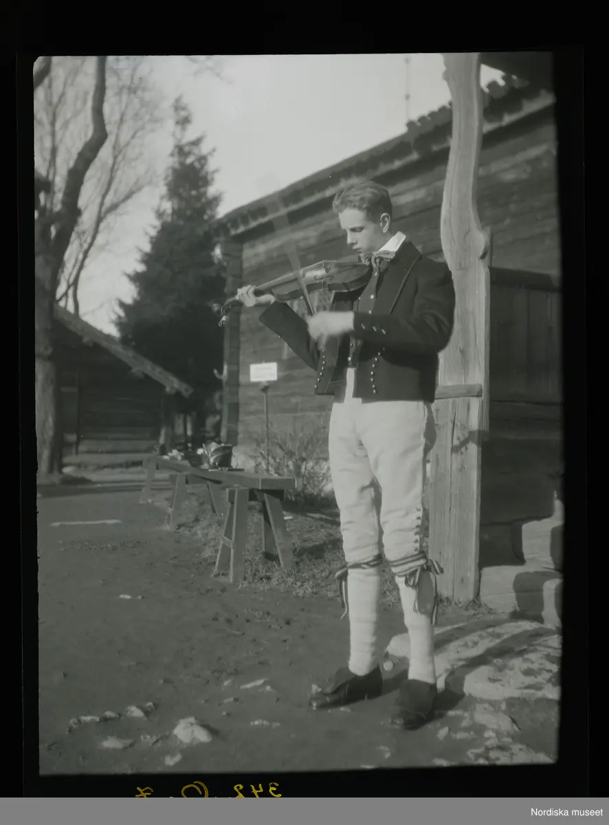 Porträtt av folkmusiker. Skansen, Stockholm.