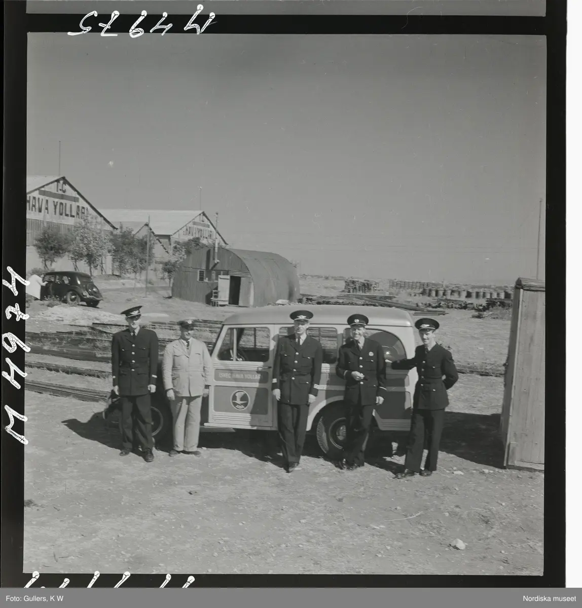 Istanbul. Fyra uniformsklädda män poserar framför en bil vid ett flygfält.