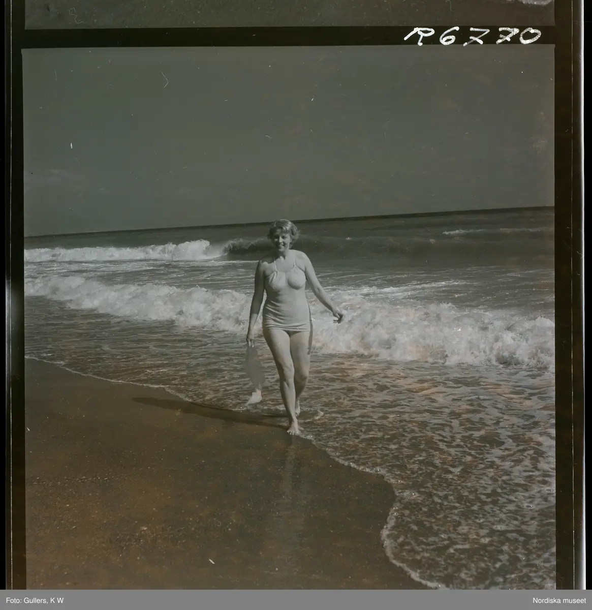 Titel: 568 F. Stieg Trenter, Torremolinos. En kvinna i vattenbrynet på en strand.
