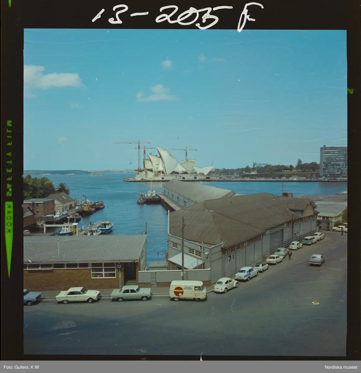 585/40 Facit Nattbild från N.K + Södra Kungstornet. Operahuset i Sydney, Australien under byggnation.