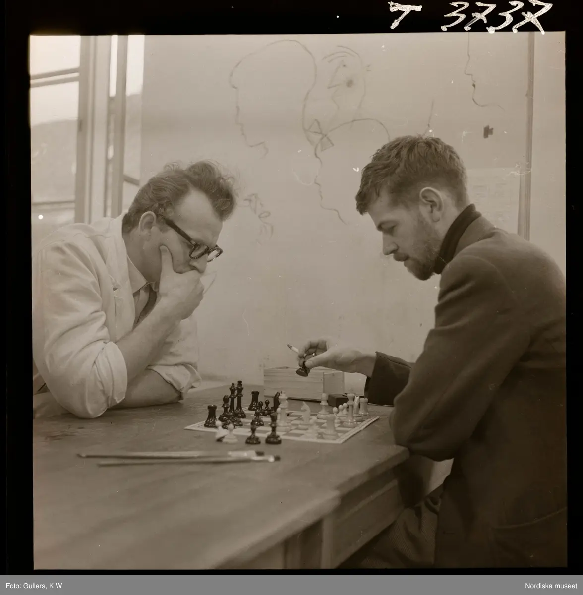 1677 B Konstfackskolan (tösen Boheman). Schackspel i ateljén.
