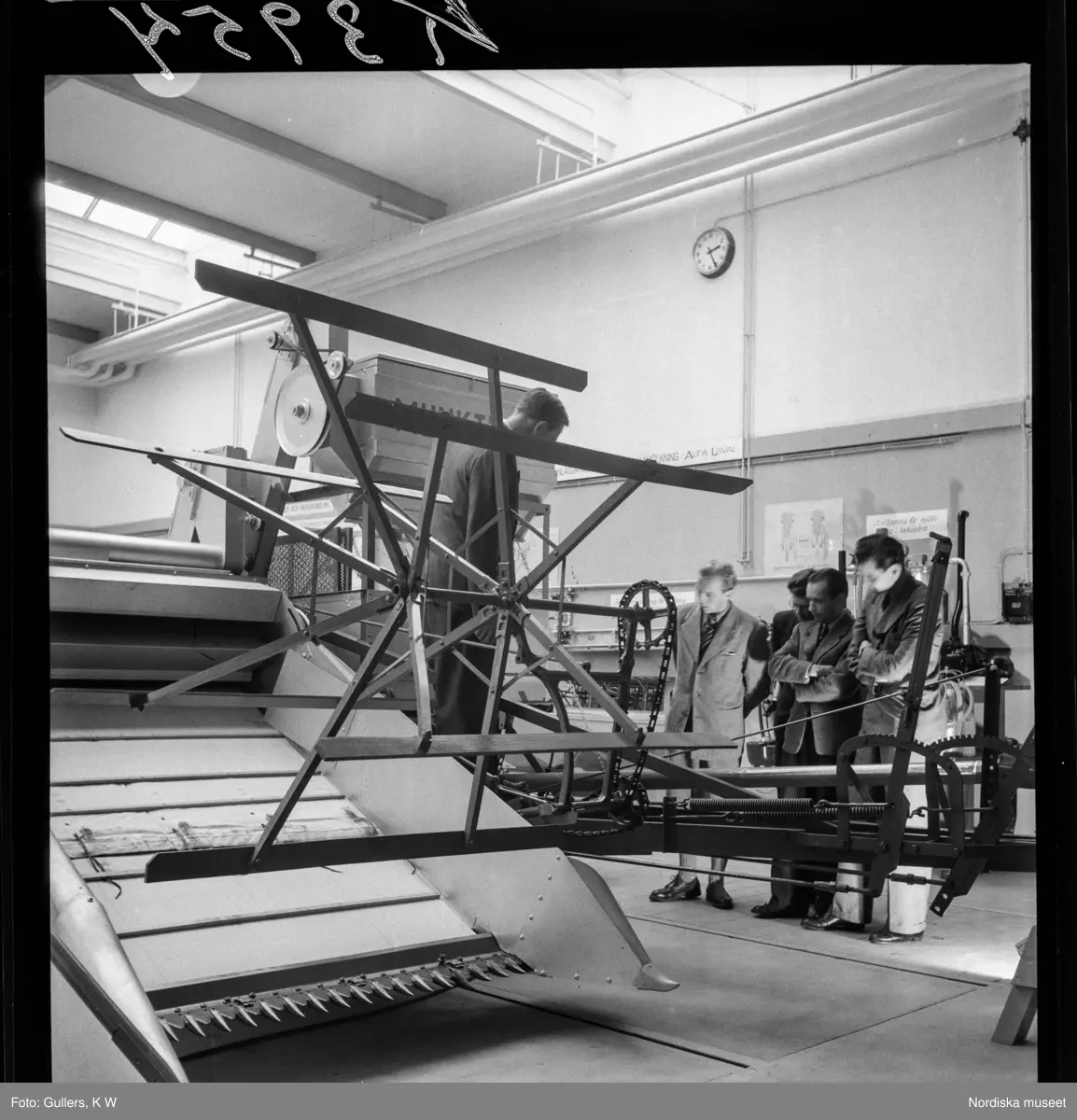 507 D Ultuna. En grupp studenter inspekterar en skördetröska.