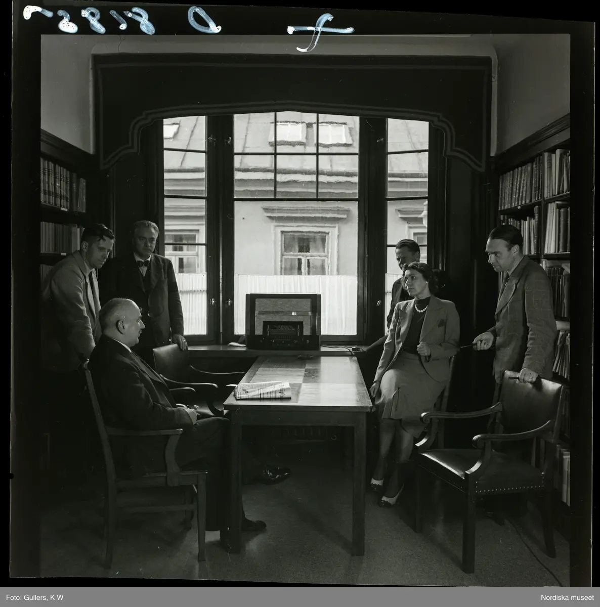 Journalist P. Wange tillsammans med kollegor på Norrköpings tidningars redaktion.