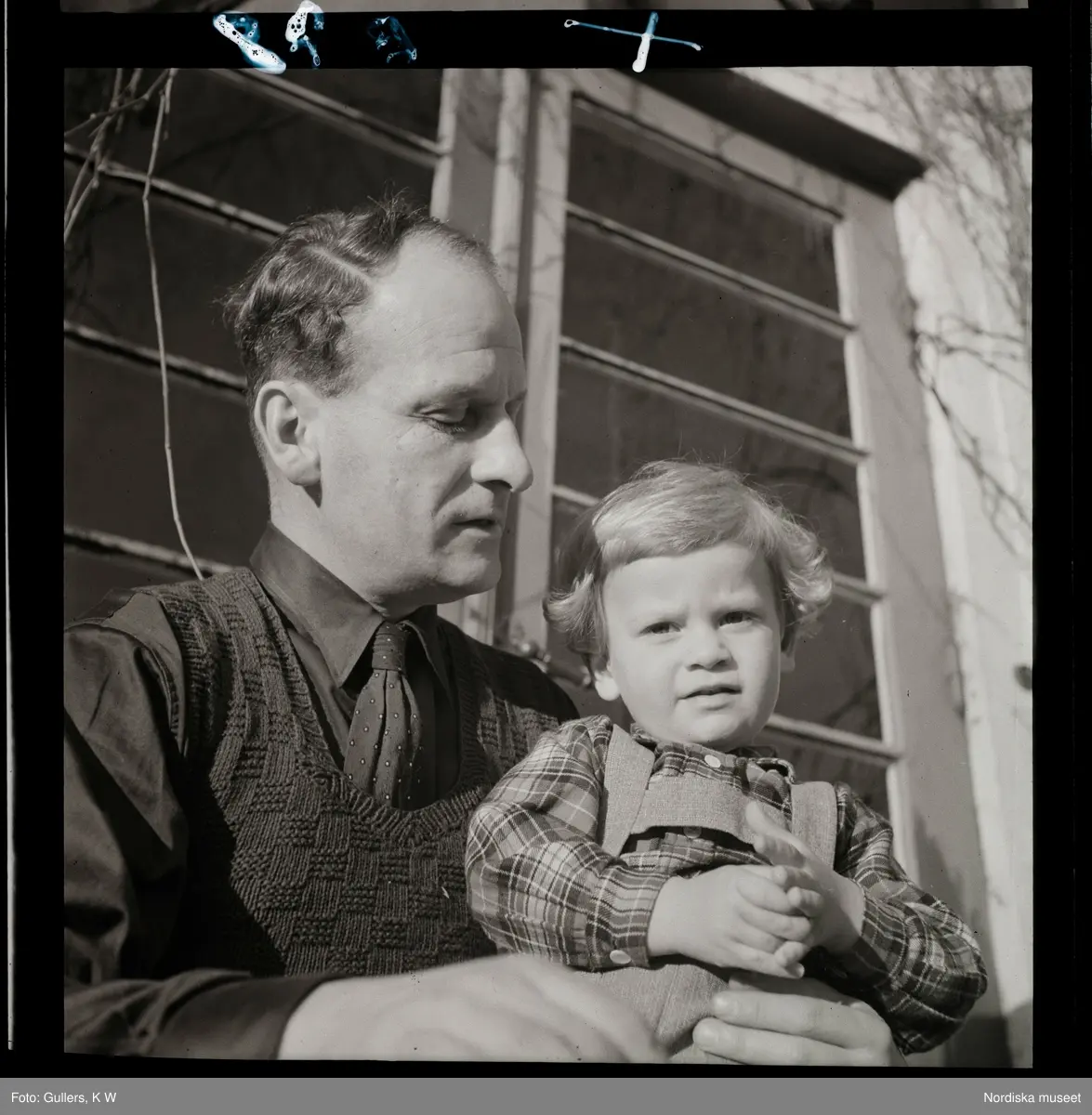564 Vårgårda Havregryn. Porträtt av man med liten pojke i knät, sittandes utomhus.