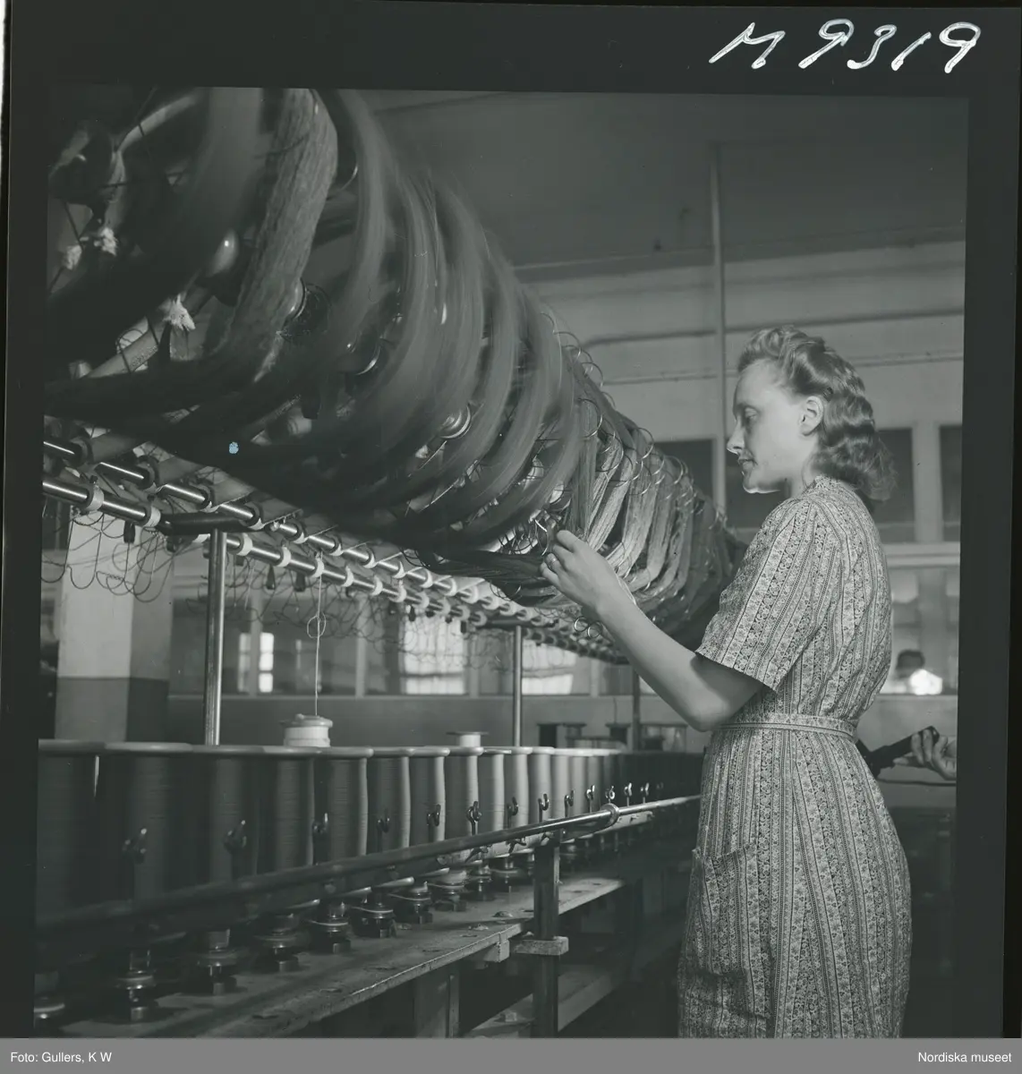 1708 E Mölnlycke väverier, Krokslätt. Kvinna arbetar.