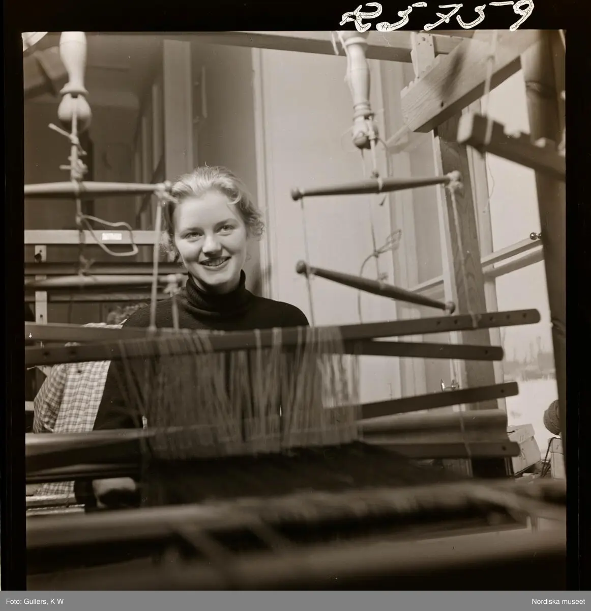 1677 A Fröken Pia Jonsson, Konstfackskolan Stockholm. En elev väver.
