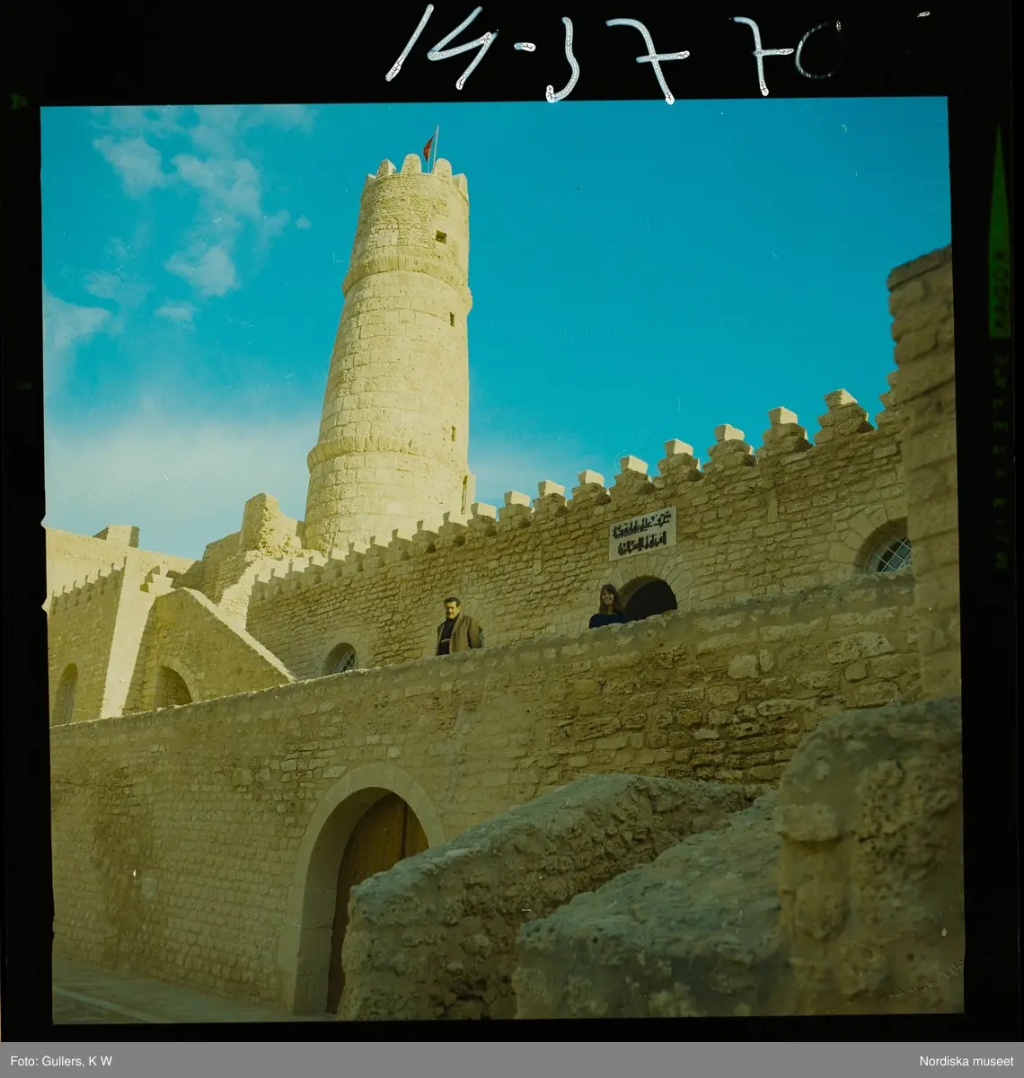 2791 Tunisien Kartago. En kvinna besöker en byggnad tillsammans med en lokal guide.