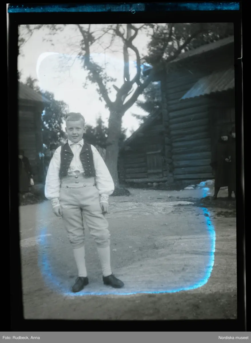 12 Skansen Ringleksbarn. En pojke i folkdräkt, utomhus på Skansen.