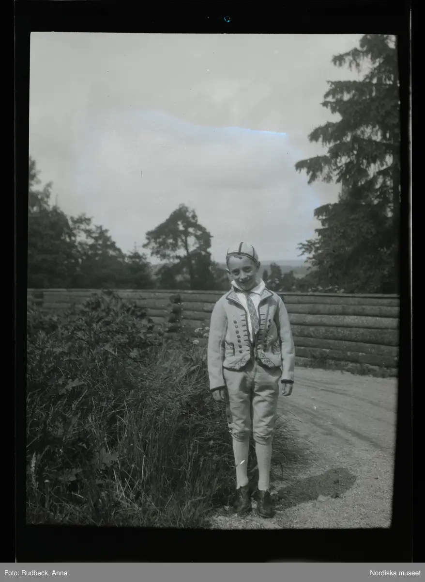 13 Skansen Ringleksbarn. En pojke i folkdräkt, utomhus på Skansen.